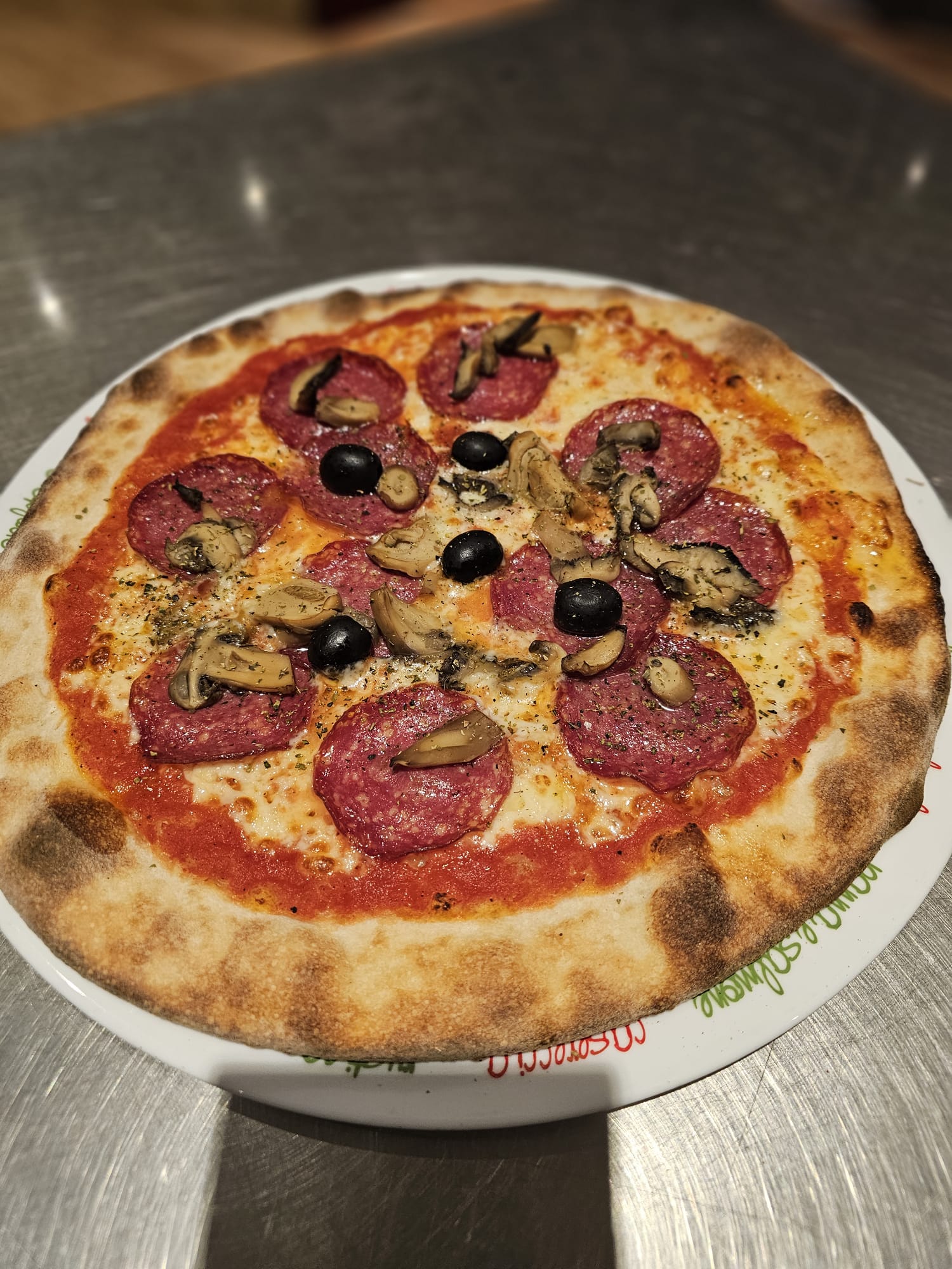 (Tomaten, Mozzarella, Salami, Pilze, Oliven, Oregano)